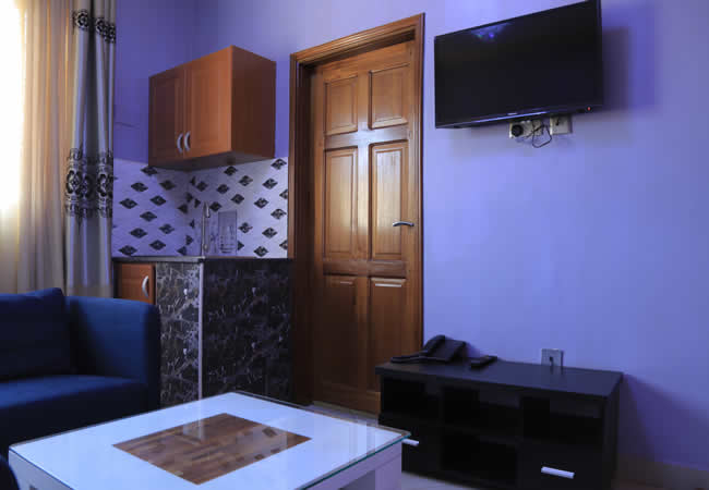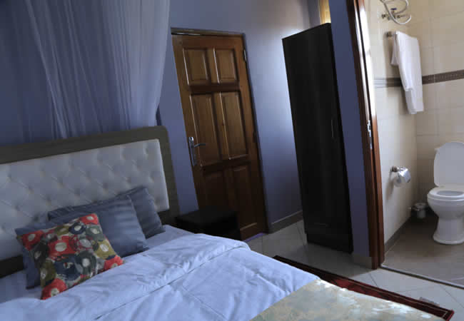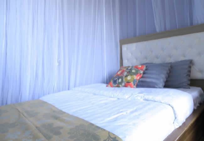ROOM (comes with a “4×6” single bed with a mosquito net, night stand with a phone, TV with DSTV or Cable, heated water for showers and a sitting toilet).